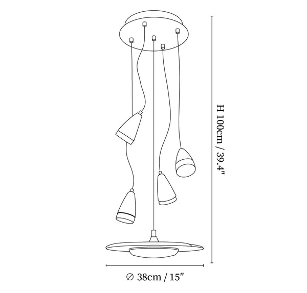 5 Heads: Dia 38cm x H 100cm / ∅ 15" x W 39.4"