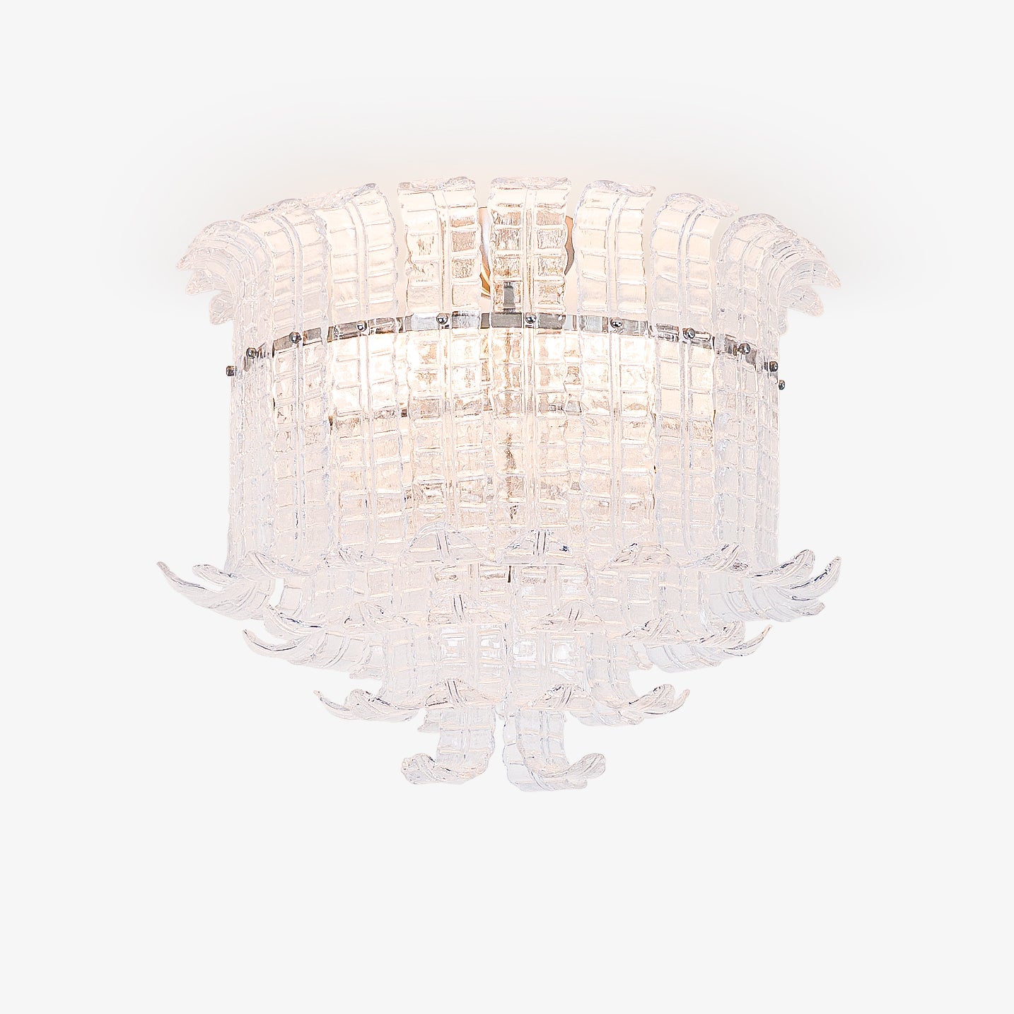 The Calista Murano Glass Ceiling Lamp offers a blend of modern elegance and vintage charm. Designed with precision, this ceiling lamp features hand-crafted Murano glass panels arranged in an intricate, layered pattern that captures and diffuses light beautifully. Its low-profile yet stunning design makes it a perfect fit for rooms with lower ceilings, while still providing a touch of luxury. Ideal for living rooms, bedrooms, or hallways, the Calista ceiling lamp transforms any space with its timeless elegance and radiant glow.