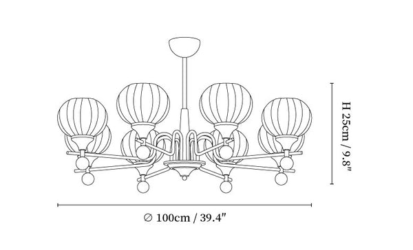 8-lights Size: Dia 100cm x H 25cm / ∅ 39.4″ x H 9.8″
