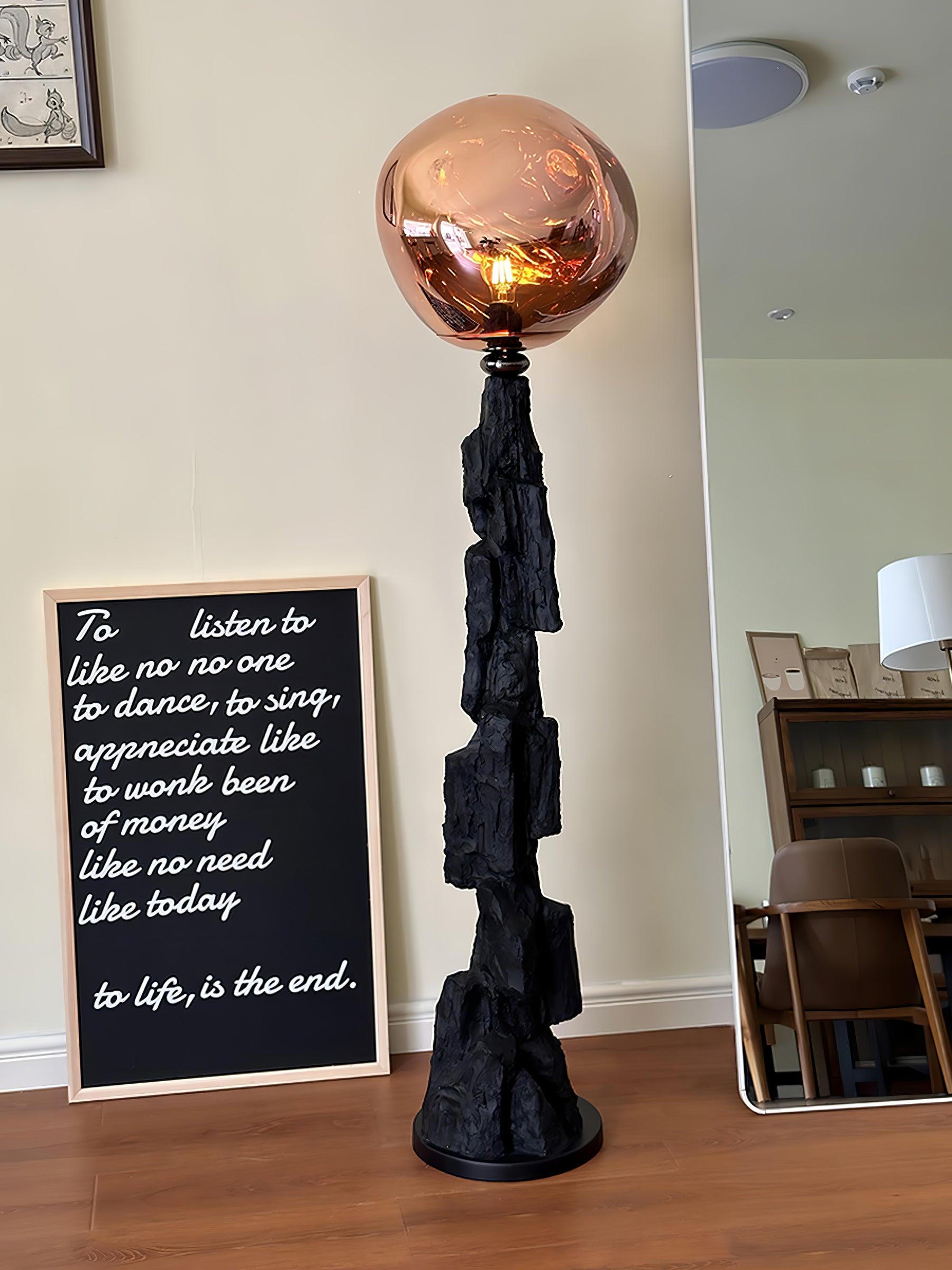 The Charcoal Lava Floor Lamp offers an eye-catching design with an illuminating, glass-like finish when lit up and a mirrored effect when off. Create a warm ambiance and enjoy a mesmerizing effect in any room with this stylish statement piece.