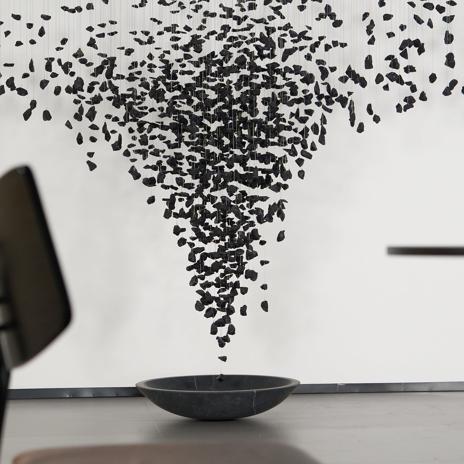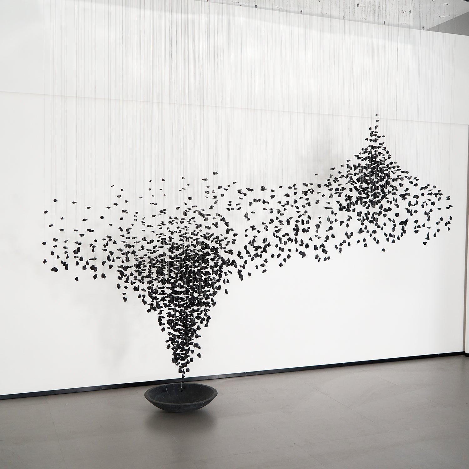 What begins with a single lump of charcoal extends into a line and then expands to fill a space. The design artist uses charcoal, with its dualistic connotations of creation and destruction, to suggest that everything in the world is connected and that the entire universe is contained within a single point. The implications are simple and clear.