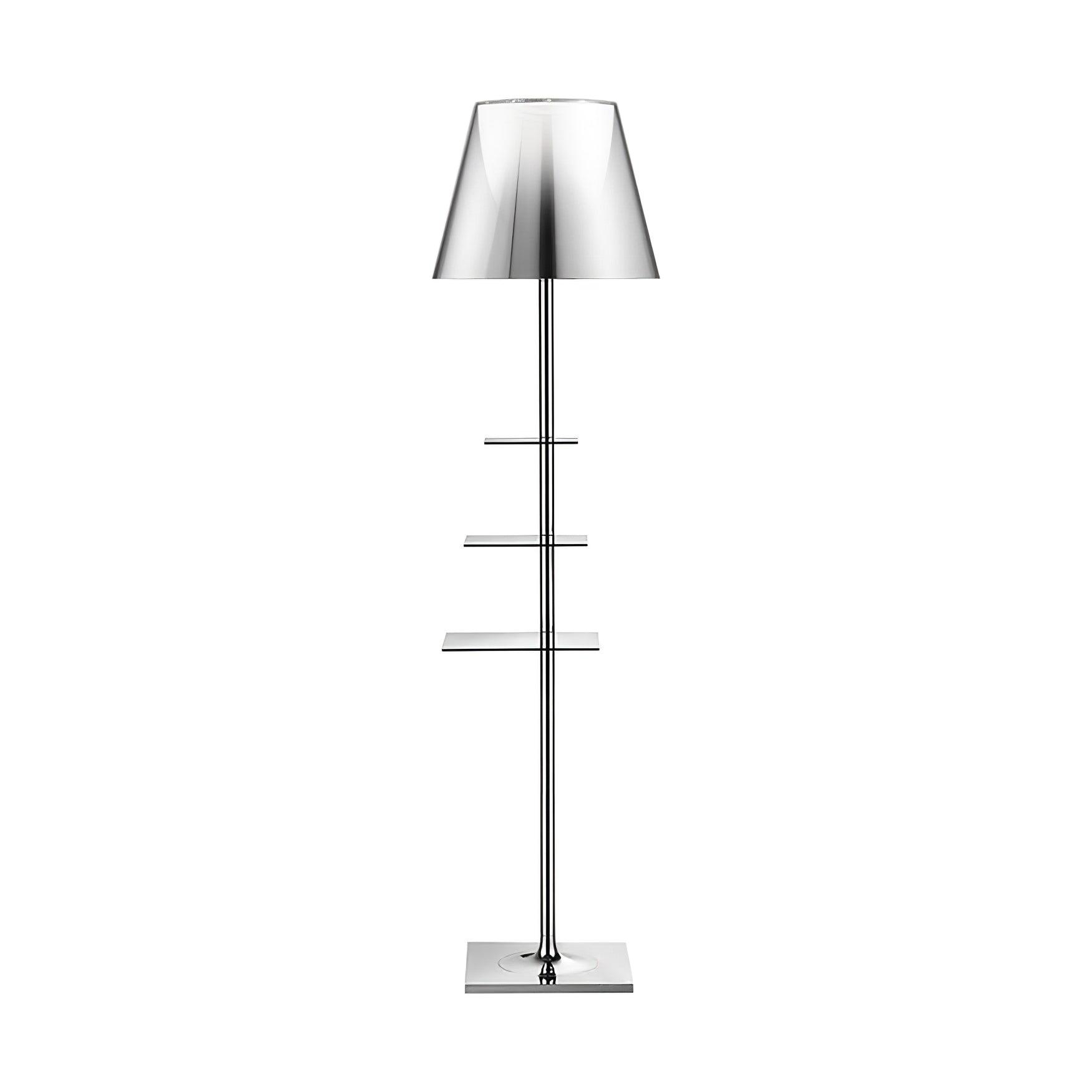 Discover the sleek and modern Chrome Prism Table Floor Lamp, an avant-garde fusion of illumination and convenience. With its shining chrome finish, this lamp's body boasts a prism-like structure that captures and reflects light in a dazzling display of brilliance. The integrated table, a practical feature, is seamlessly incorporated into the design, offering a handy space for your essentials right where you need them. Ideal for contemporary living spaces, the lamp not only provides ample lighting with its elegant lampshade but also adds a touch of sophistication with its minimalist aesthetic and functional design. Whether placed beside a reading chair or used to enhance a chic bedroom, the Chrome Prism Table Floor Lamp is a statement piece that combines form with function.