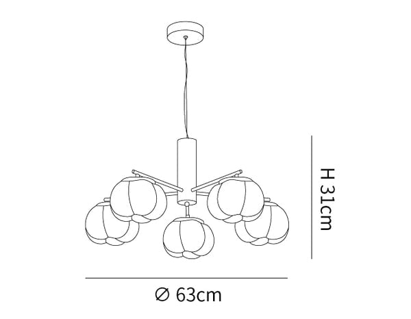 5 Lamps Size: Dia 63cm x H 31cm / ∅ 24.8″ x H 12.2″