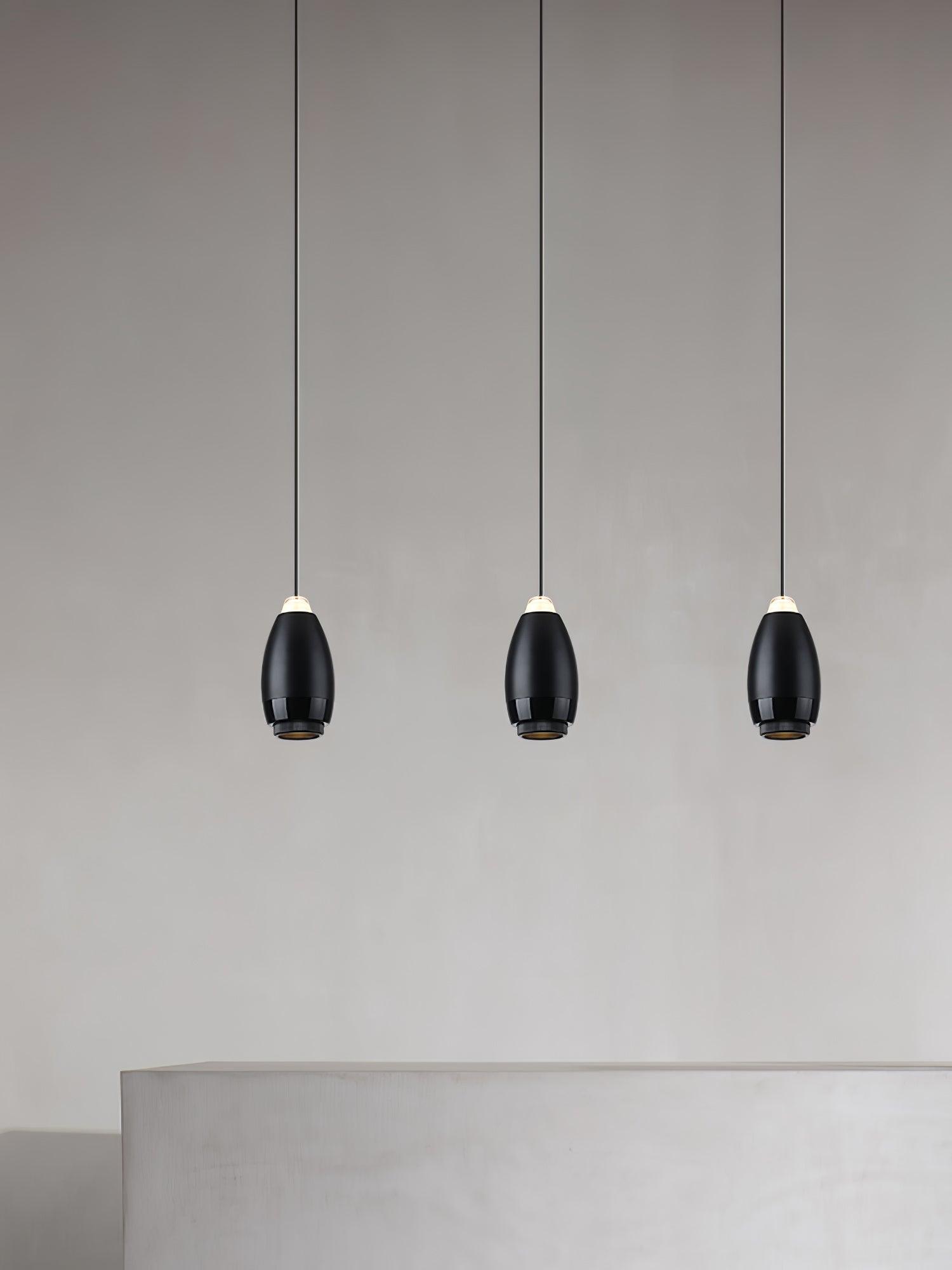The Dawn Pendant Light is characterized by its simple and at the same time special appearance. Its cylindrical shape with tapered ends looks modern and elegant. Arranged above the dining table or desk, the lamp provides a pleasant spotlight and creates a pleasant lighting atmosphere in the room. All variants can also be excellently combined with one another. Arranged individually or in clusters or rows, the Dawn Pendant Light is a subtle eye-catcher.