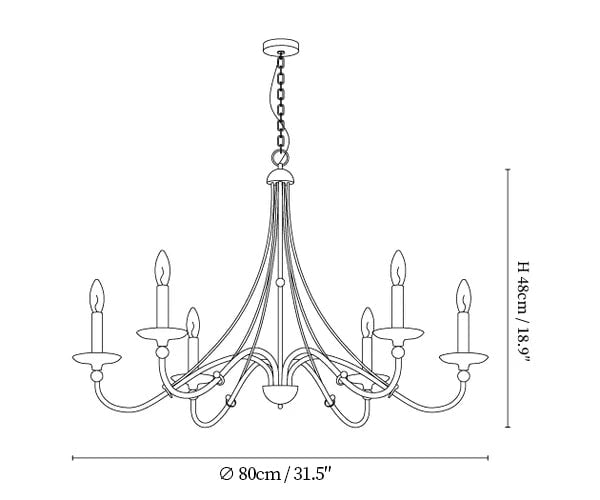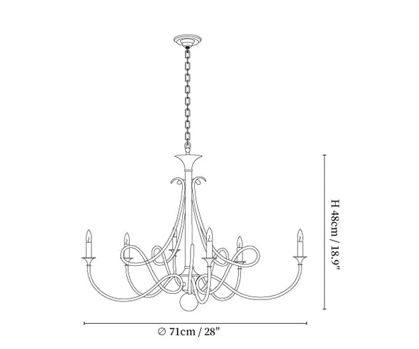 6 Heads Size: Dia 71cm x H 48cm / ∅ 28″ x H 18.9″