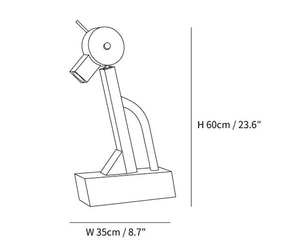 Crafted with an artful blend of functionality and playful design, this lamp features a striking metal construction, characterized by a vivid yellow arch that supports a circular pink shade, reminiscent of a duck's charming silhouette. With a whimsical red accent that mimics a duck's bill and a textured base adding a contemporary touch, this desk lamp is a delightful addition to any modern workspace or creative corner. Its LED light source provides efficient illumination, perfect for reading, working, or adding a pop of color and joy to your daily tasks.