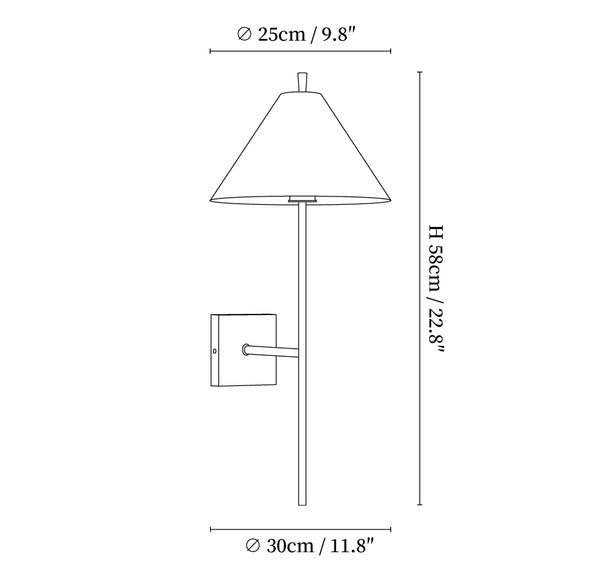 Transform your space with the Ellis Brass Wall Light. Its sleek, minimalist design features a slim brass frame and sharp angles, creating a refined, contemporary profile. The conical white shade and warm, ambient glow add subtle sophistication to any room. Perfect for modern, minimalist, and transitional decor.
