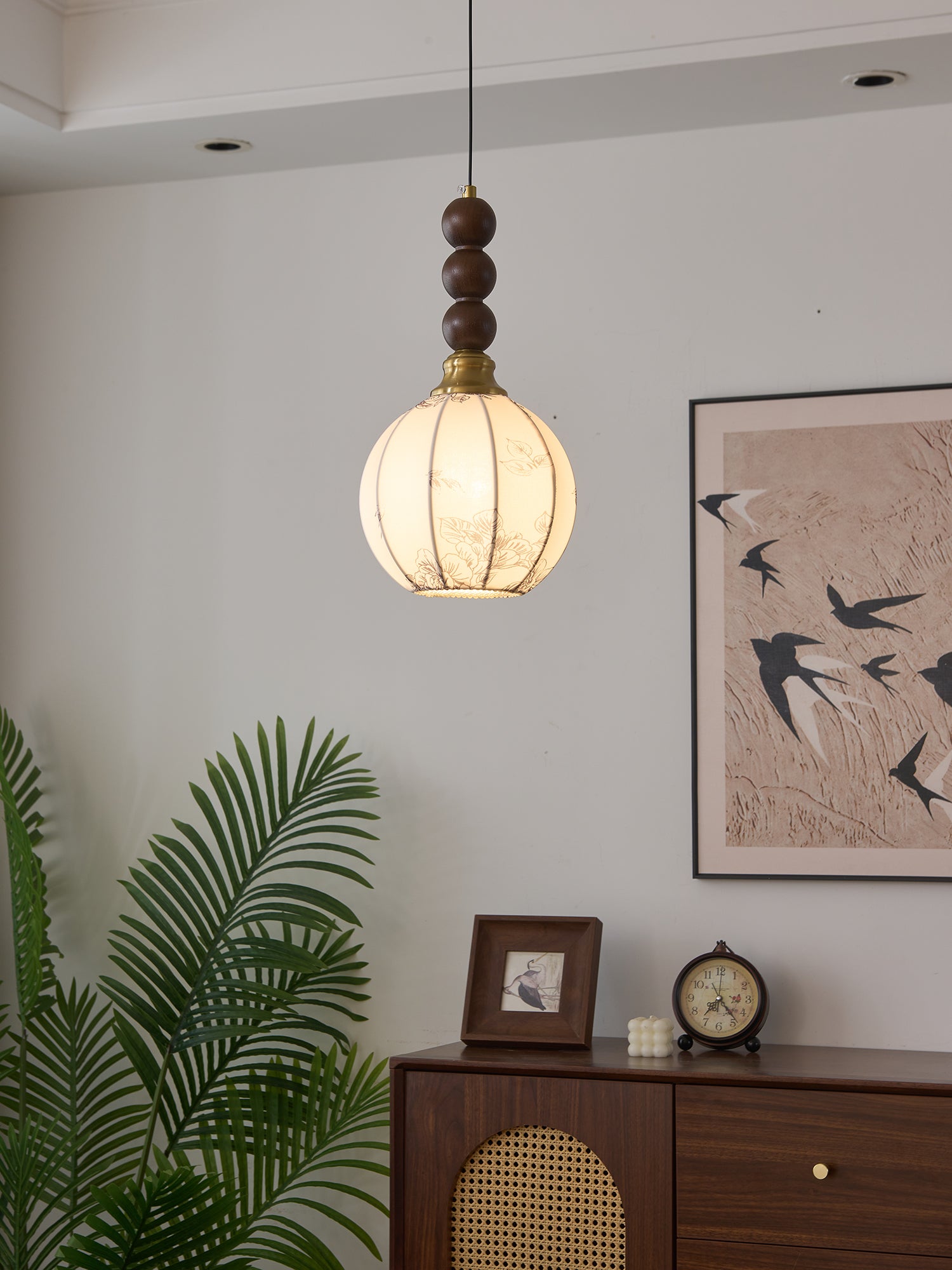 Inspired by classic European craftsmanship, this pendant light features delicate textures and organic materials, creating an inviting atmosphere in dining rooms, bedrooms, or cozy reading nooks. Whether displayed as a standalone accent or arranged in a series, the Eloria Pendant Light adds a touch of elegance and warmth to any space.