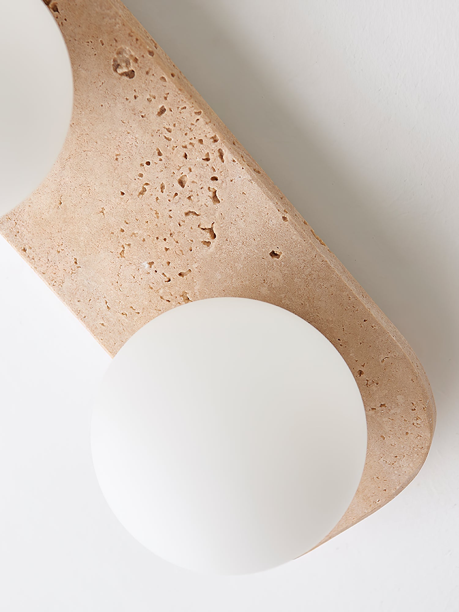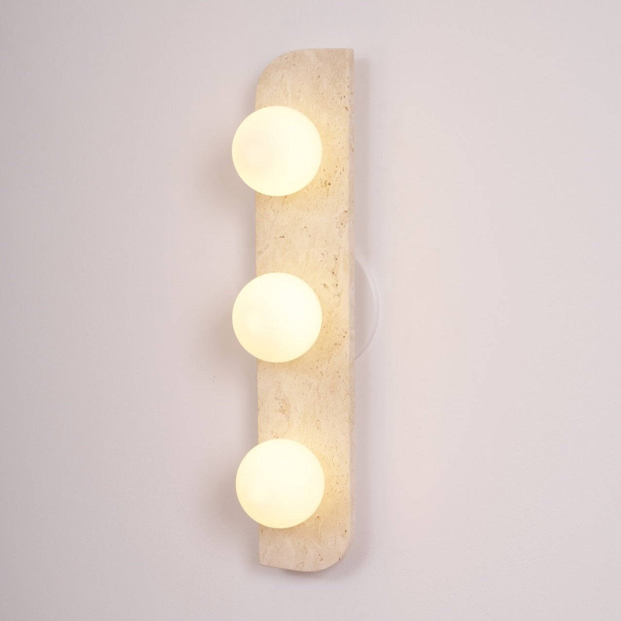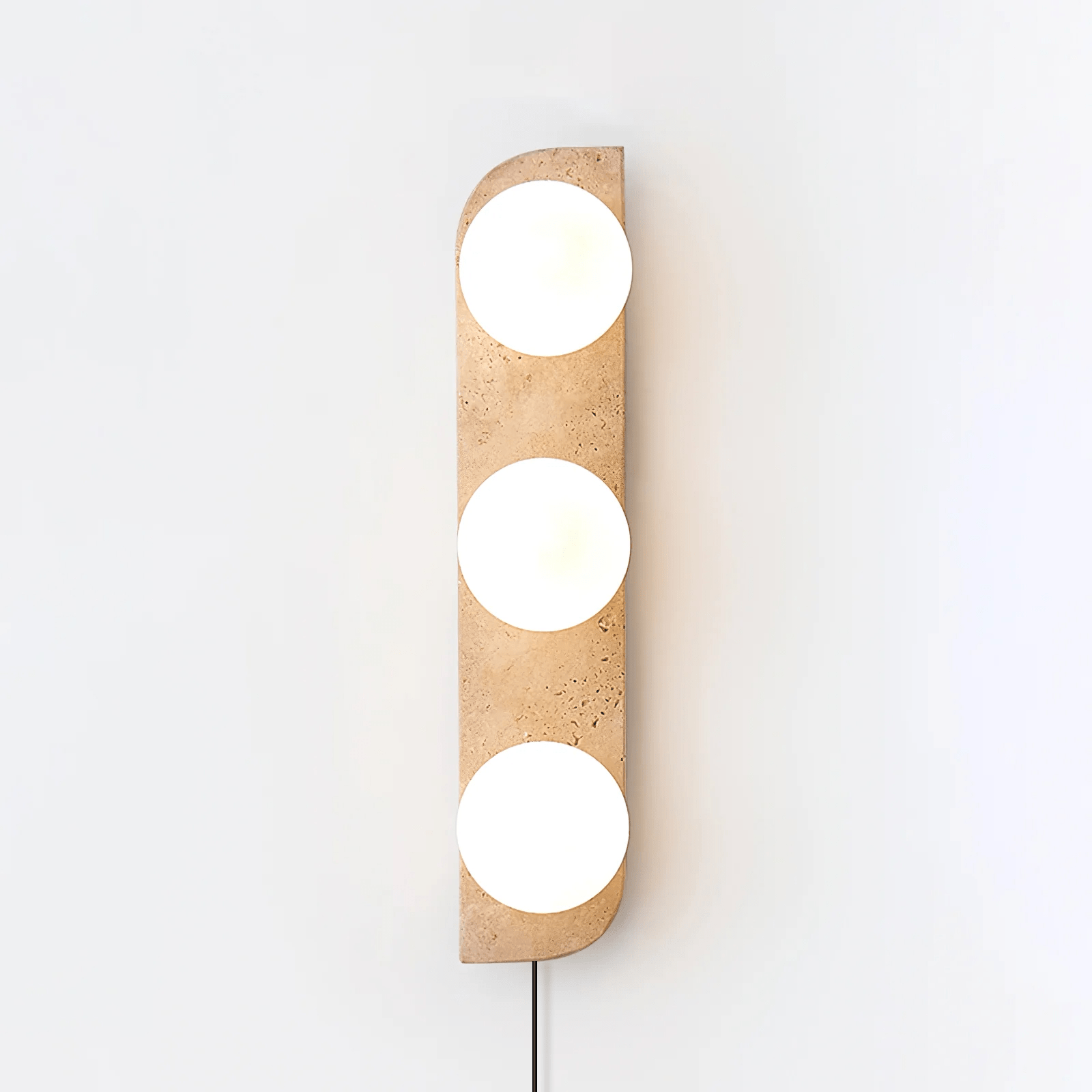 The Elysian Travertine Wall Light combines the timeless beauty of natural travertine stone with the soft glow of modern lighting design. Featuring three elegantly arranged spherical glass globes, this fixture diffuses a warm, inviting light, making it an ideal addition to both contemporary and minimalist interiors.