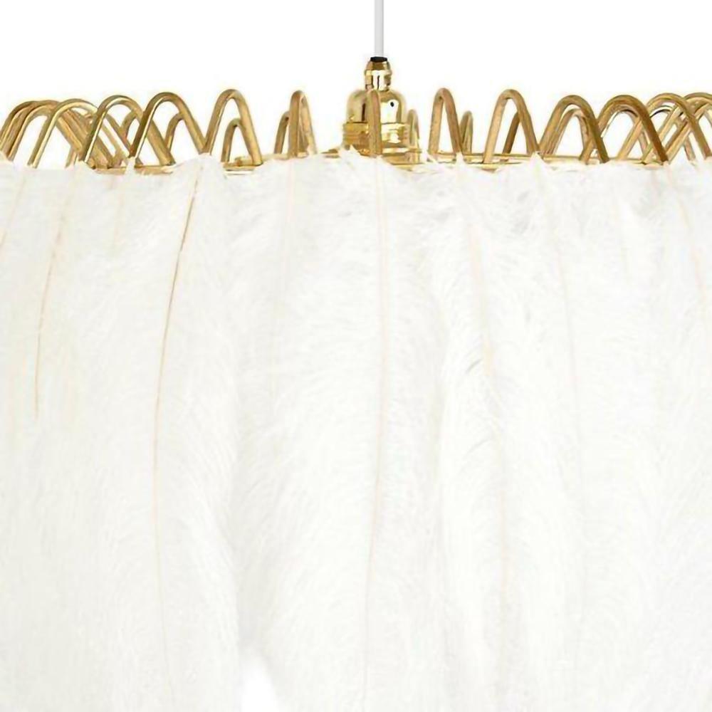 These glamorous feather pendant lamps feature luxurious black or white feathers held in place by a gold metal wire frame. Soft and delicate, the lights are reminiscent of the elegant feather boas and decadent hats of days gone by, but the design is totally contemporary. The Lamps feature a ring of authentic feathers secured by a series of metal gold arms which glow and glint seductively when alight.