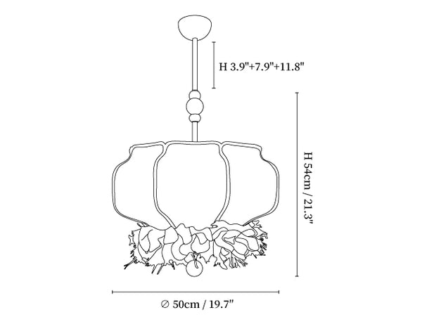 3.9"+7.9"+11.8" Adjustable hanging height rod. Can be extended upon request.