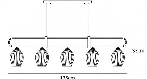 5 heads Size: L 135cm x H 33cm / ∅ 53.1″ x H 13″