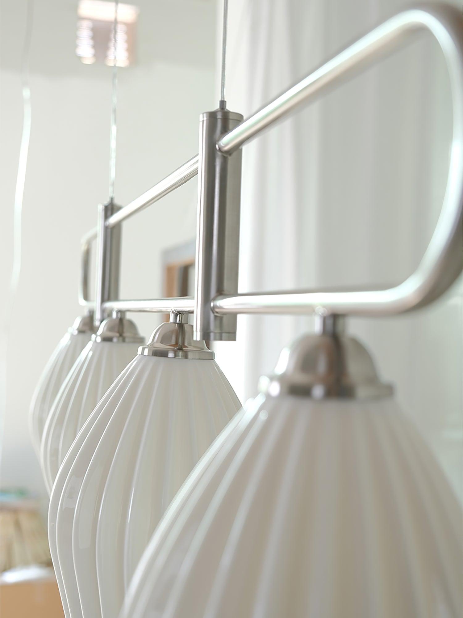 Lighting favourite Fin pendant is now available in a series of eye-catching groupings, perfectly suited for creating a stunning focal point in sitting rooms, hallways, and dining rooms. The intricate and decorative hand made bone china shades will bring a warm and enhancing glow to any setting, and can be hung at different lengths, depending on personal preference. The exquisite matching ceiling rose, completes the look beautifully.