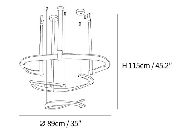 Immerse your space in modern elegance with the Finopi Chandelier. This linear hanging sculpture is crafted from a series of twisted rings supported by thin wires, creating an eye-catching abstract design. Each ring has its own unique flaws, illuminated by integrated LEDs for a sophisticated touch. With its tasteful finishes and geometric silhouettes, this modern piece suits any interior.