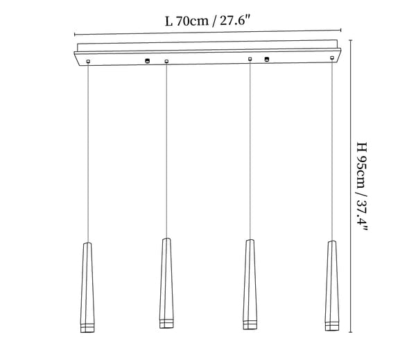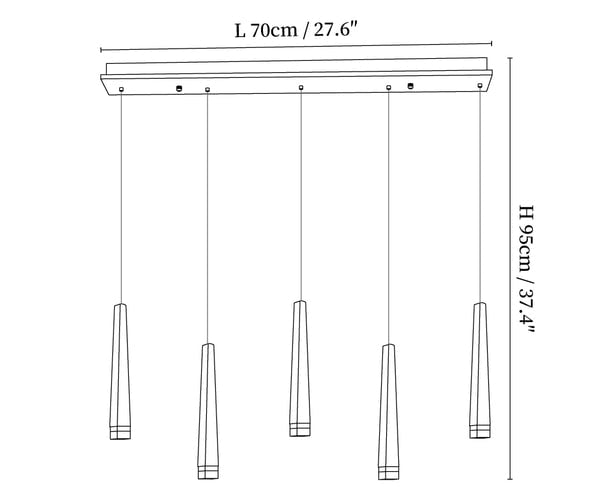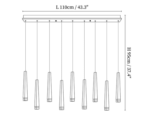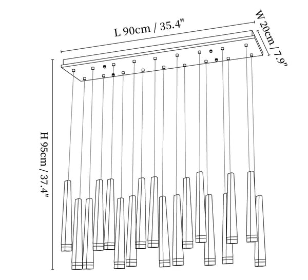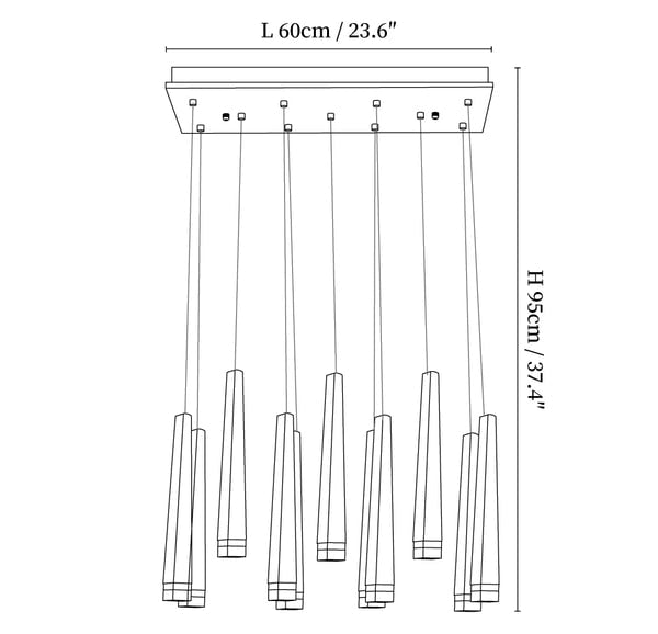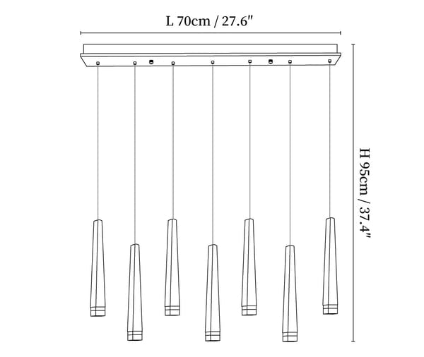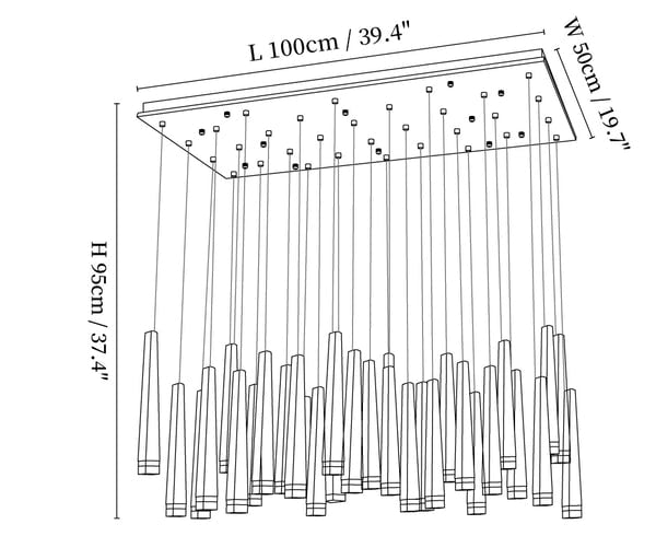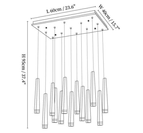 59″ Adjustable hanging height cable, which can be lengthened as required.