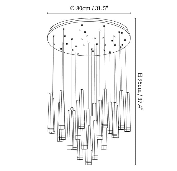 The Firewood Stick Chandelier is a contemporary light fixture crafted from sleek wooden sticks, mimicking the natural beauty of stacked firewood. With LED lights at the base and minimalist cables, this chandelier brings warmth and dimension to any space. Elevate your home or office with this striking and modern design.