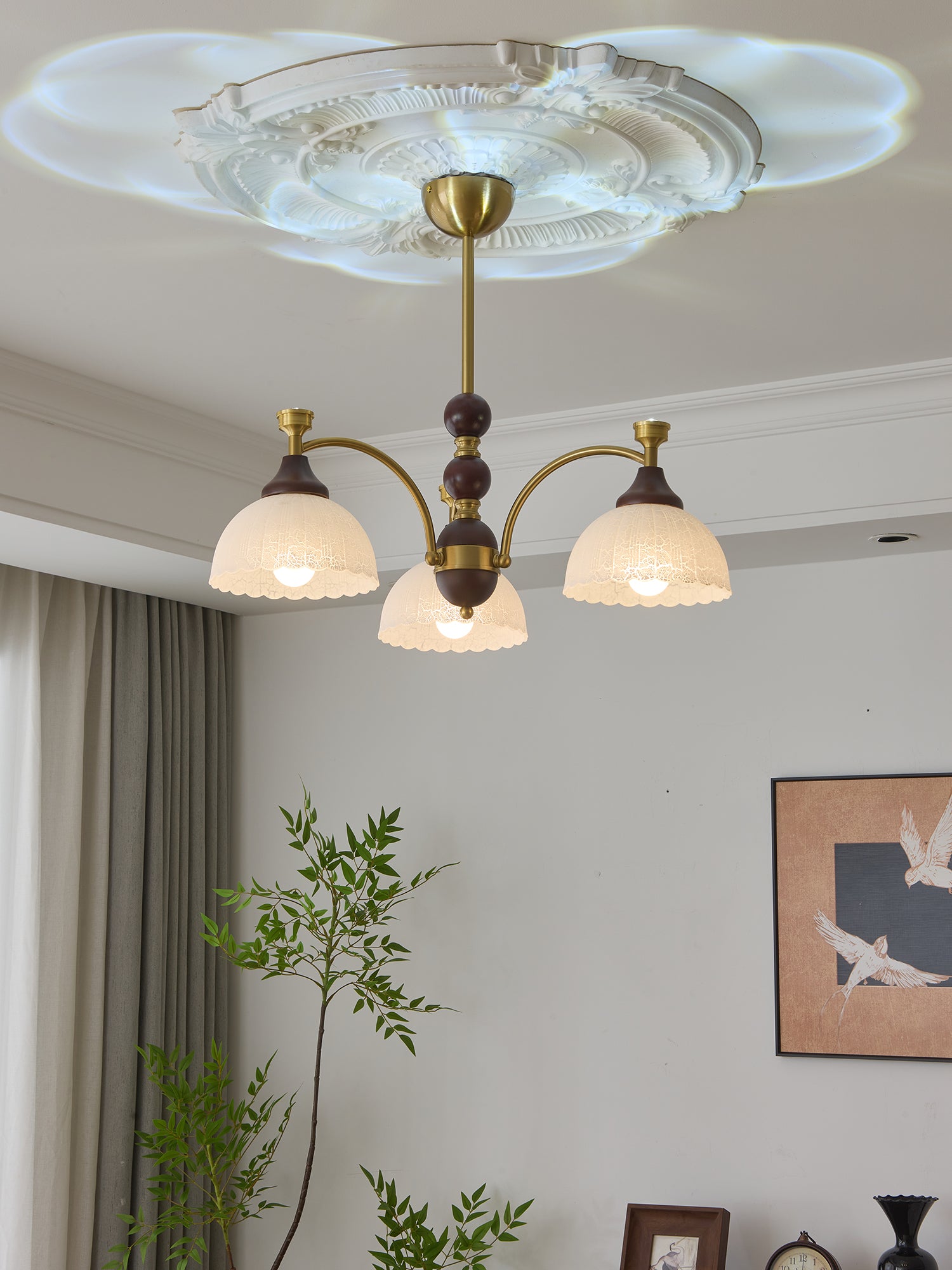 The Florentia Chandelier by Lighting is a stunning blend of elegance and vintage charm. Featuring intricately designed iron arms, warm wooden accents, and delicately etched glass shades, this chandelier radiates a soft, inviting glow. The graceful curves and antique brass finish enhance its timeless aesthetic, making it a perfect centerpiece for classic and contemporary interiors alike. Ideal for dining rooms, living spaces, or grand foyers, the Florentia Chandelier adds sophistication and warmth to any setting.