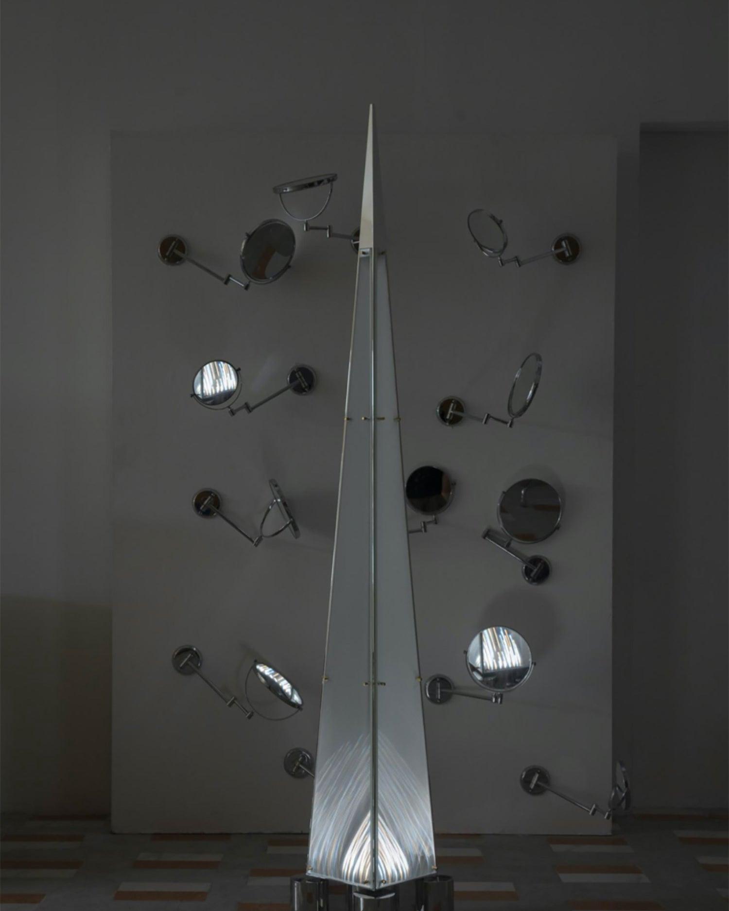 'Fragment' Floor lamp used Patterned glass that can distort the direction of light, and create a special effect, inspired by archetype of a western gothic church and the mysterious atmosphere created by the colorful windows in the church, transforming architectural language into his lighting series 'fragment'.