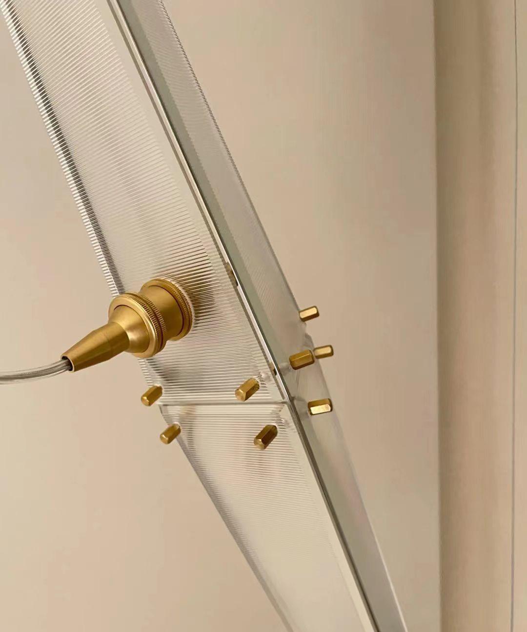 To explore the balance between the tradition and modern, he fold stainless steel into extremely long cone. through exquisite cutting, acrylic with wavy texture was fixed on the stainless steel frame, deliberately exposing all the components to create a delicate and violent conflict.