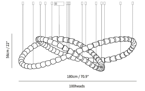 111 heads: Dia 200cm x H 60cm / ∅ 78.7″ x H 23.6″