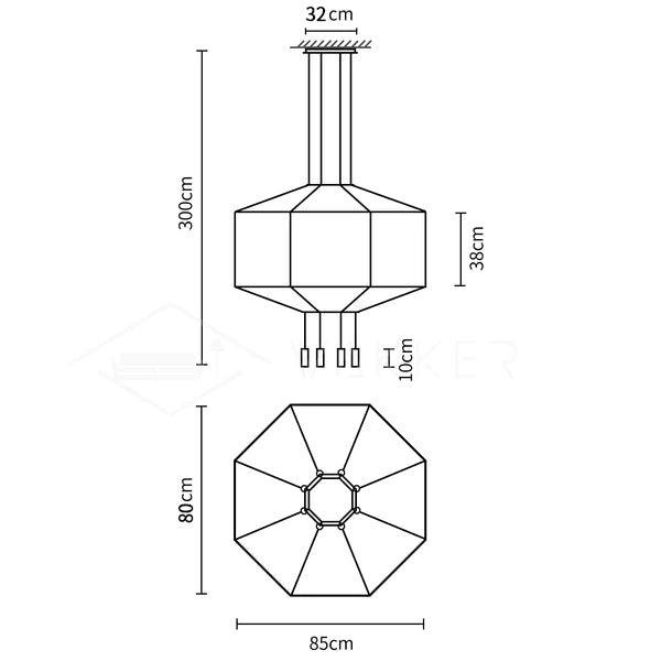 8 heads Octogonal size: Dia 80cm x H 150cm / ∅ 31.5″ x H 59.1″