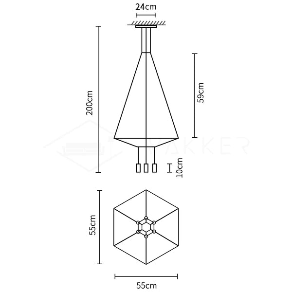 6 heads Hexagonal size: Dia 55cm x H 150cm / ∅ 21.7″ x H 59.1″