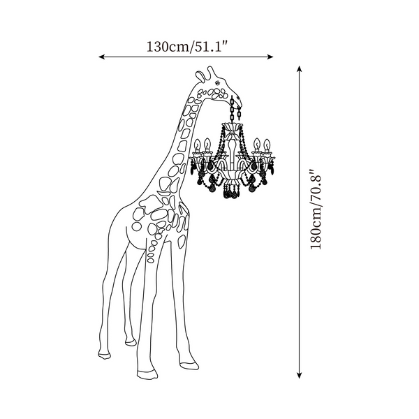 Indulge in the ultimate blend of art and light with the Giraffe Sculpture Floor Lamp, only at woddey. Marvel at the pristine white giraffe, gracefully displaying a luxurious chandelier in its mouth. The intricate crystals and warm candlelight create an ambiance of opulence, elevating any space into a refined exhibit.