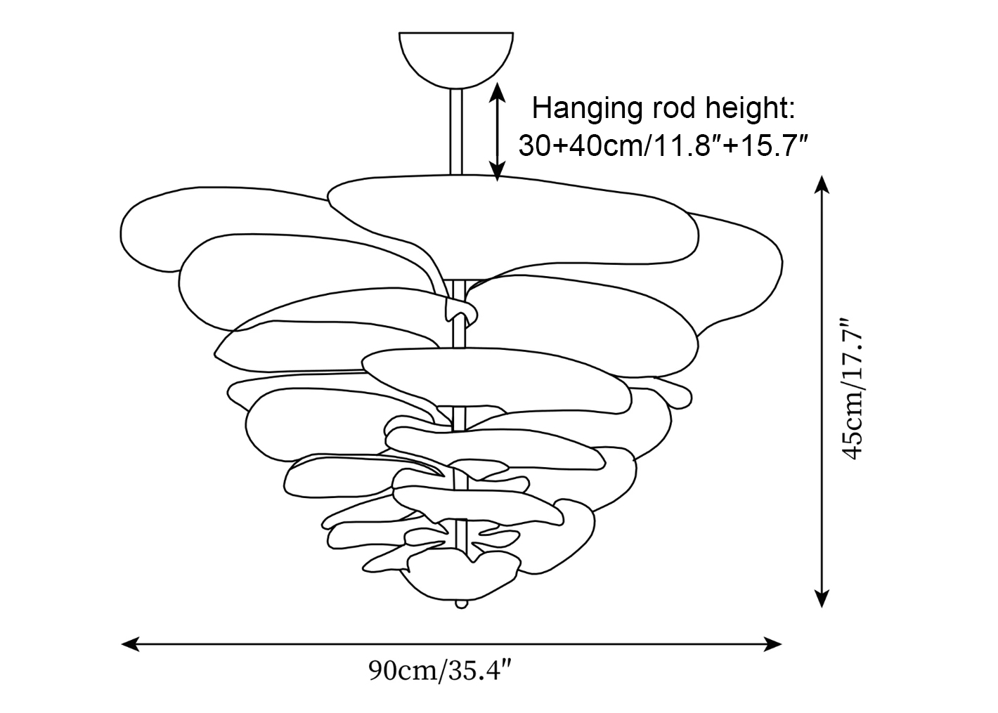 20-lights Size: Dia 90cm x H 45cm / ∅ 35.4″ x H 17.7″ (Weight: ~220 lbs), (E14 bulbs x 16 pieces, G4 bulbs x 4 pieces)