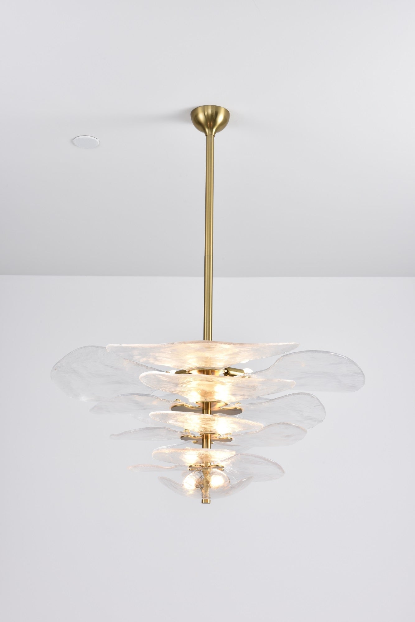 The Golden Petal Chandelier is a captivating blend of nature-inspired elegance and modern luxury. Its layered, petal-like glass discs in warm amber hues mimic the gentle flow of flower petals, casting a soft, ambient glow that adds warmth and sophistication to any space. Suspended by a sleek gold rod, this chandelier is a perfect statement piece for dining rooms, living rooms, or entryways, bringing a radiant touch of elegance to your decor.