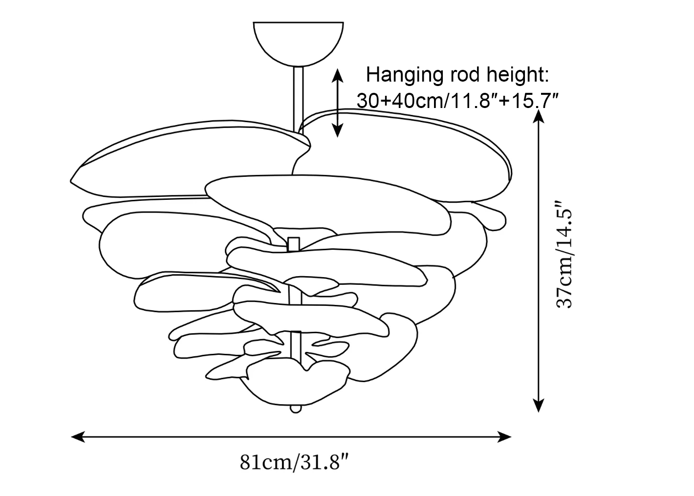 16-lights Size: Dia 81cm x H 37cm / ∅ 31.8″ x H 14.5″ (Weight: ~154 lbs), (E14 bulbs x 12 pieces, G4 bulbs x 4 pieces)