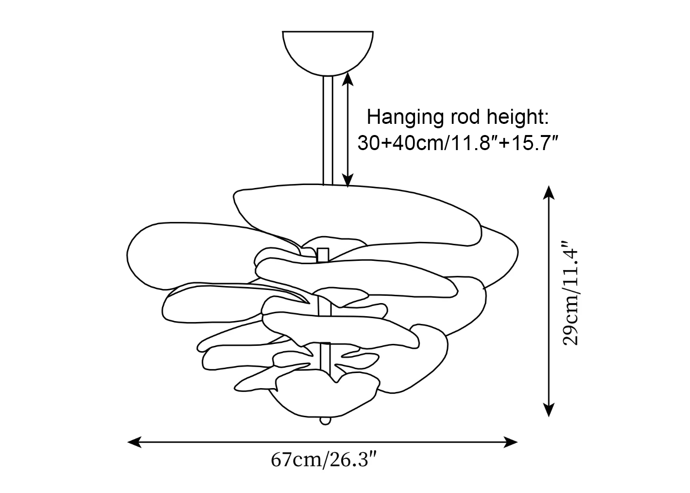 30+40cm=11.8″+15.7″ Adjustable hanging height rod, Can be extended upon request.