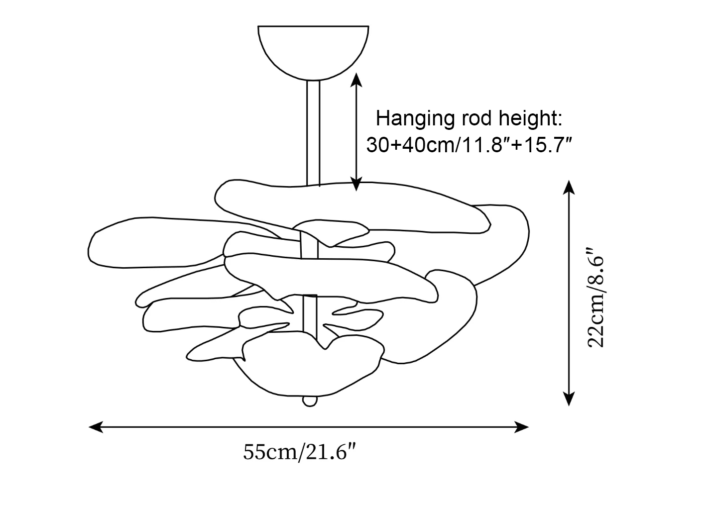 8-lights Size: Dia 55cm x H 22cm / ∅ 21.6″ x H 8.6″ (Weight: ~88 lbs), (E14 bulbs x 8 pieces)