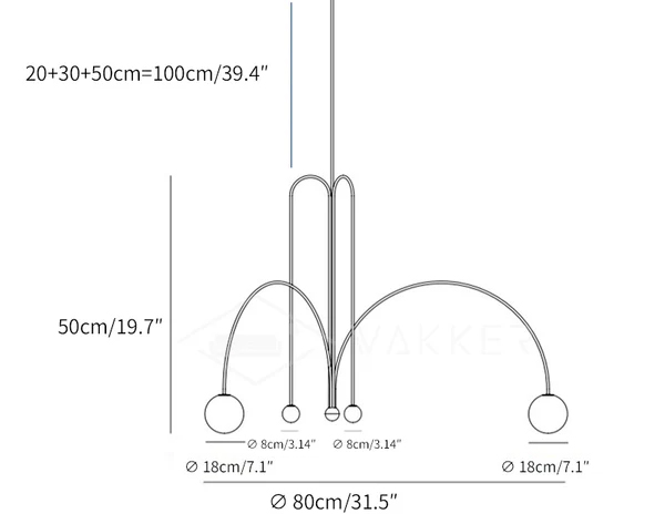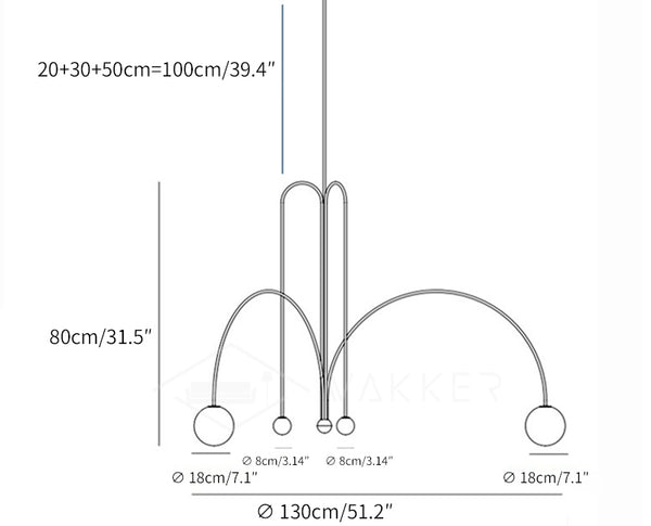 6 heads Size: Dia 80cm x H 50cm / ∅ 31.5″ x H 19.7″