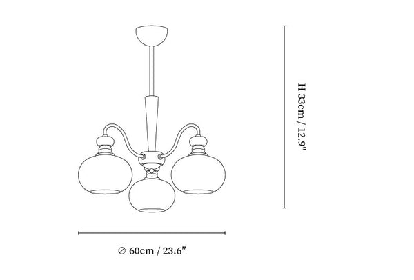 3-Lights Size: Dia 60cm x H 33cm / ∅ 23.6″ x H 12.9″