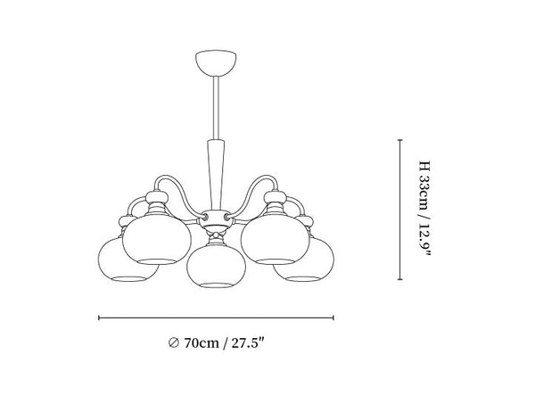 5-Lights Size: Dia 70cm x H 33cm / ∅ 27.5″ x H 12.9″