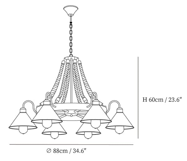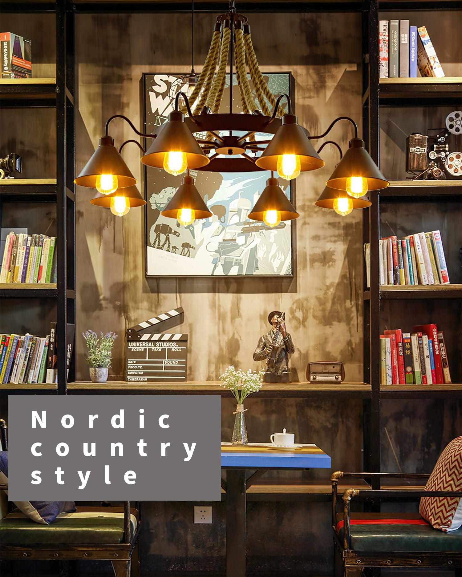 The Hemp Rope Industrial Horn Chandelier is the perfect addition to your space. Its retro industrial style, unique shape, and high-quality hardware materials exhibit a vintage charm. With a hardware iron paint lampshade and Edison light bulb, it creates a warm and inviting atmosphere. Its speaker shape, frosted surface, and environmentally friendly baking paint process ensure durability and resistance to oxidation and rust.