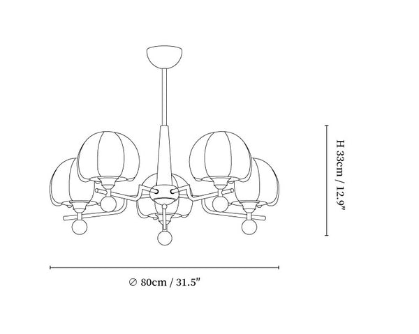 5-Lights Size: Dia 80cm x H 33cm / ∅ 31.5″ x H 12.9″