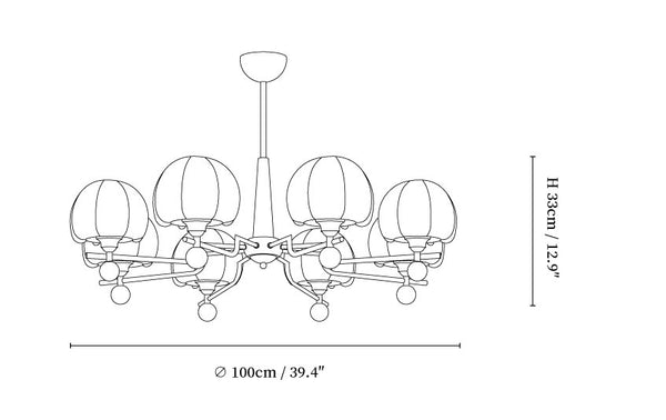 8-Lights Size: Dia 100cm x H 33cm / ∅ 39.4″ x H 12.9″