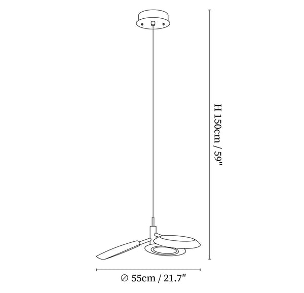 59″ Adjustable hanging height cable, which can be lengthened as required.