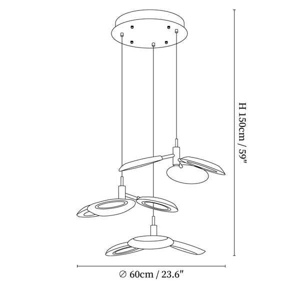 Round canopy 3 heads Size: Dia 60cm x H 150cm / ∅ 23.6″ x H 59″