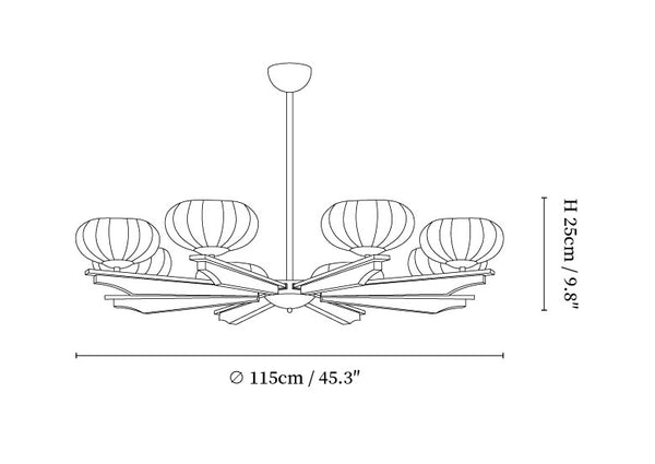8-lights Size: Dia 115cm x H 25cm / ∅ 45.3″ x H 9.8″