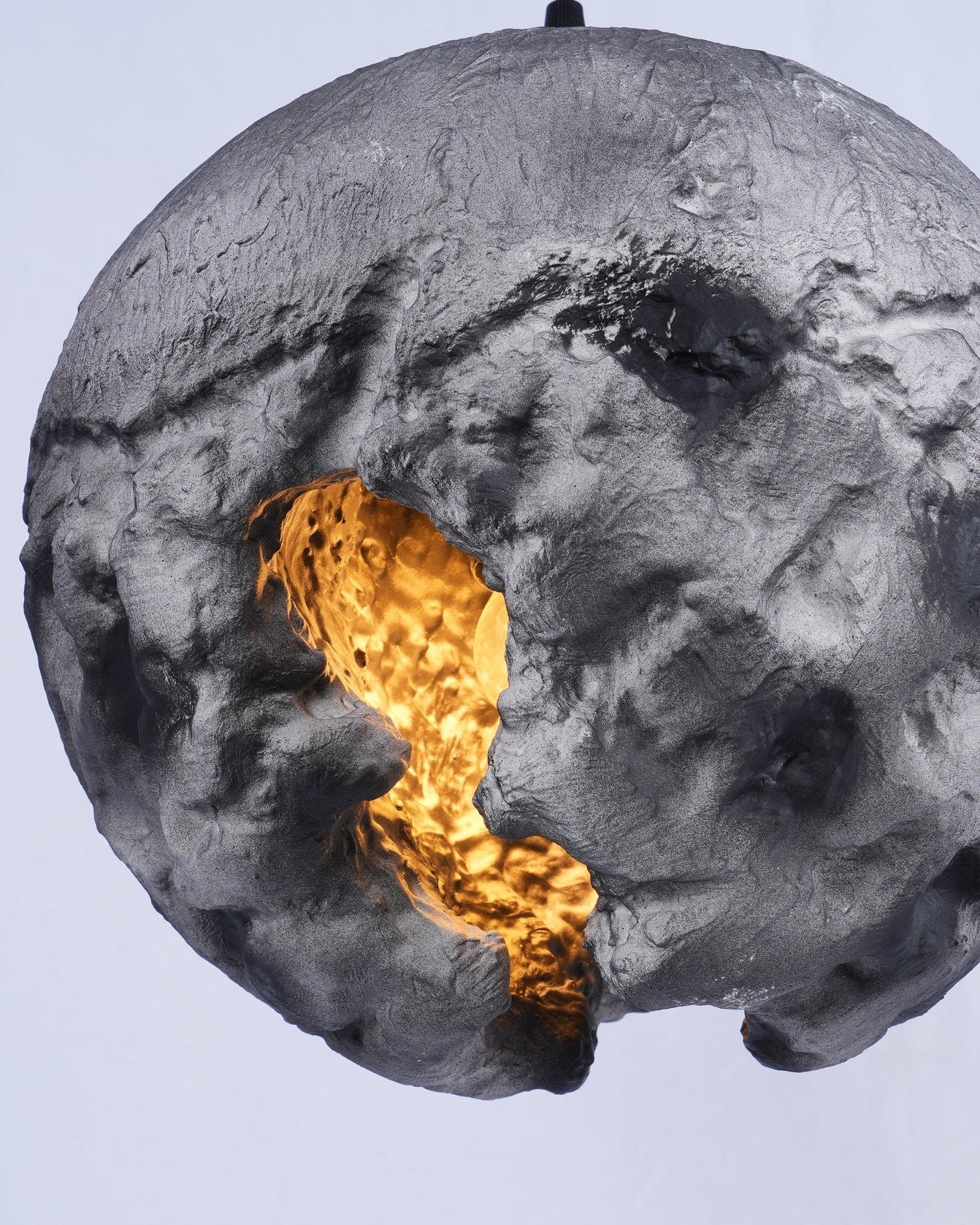 The Japanese Wabi-sabi designs have taken the world by storm in recent years, especially in Europe, because their simple finishes are perfect for Nordic interiors in light tones. Although the Japanese design is simple, it does not forget its design sense. So, the Japanese designs you see are always artistic ornaments. The same goes for this Wabi-Sabi Irregular Planet pendant lamp. The illogical shape and special materials form this somewhat postmodern creation. It looks like an exploding planet. Without conspicuous finishes, the gray or black color can better highlight the texture on its surface, setting off its texture. You might think of it as a cement chandelier, but this is made of lightweight resin and polystyrene material, and even a large size won't be very heavy. Therefore, you don't have to worry about any safety issues hanging from the ceiling.