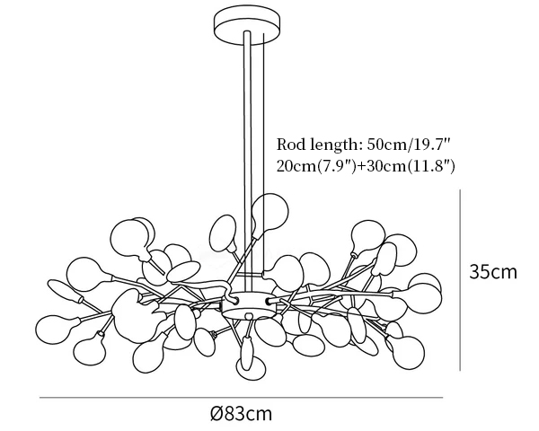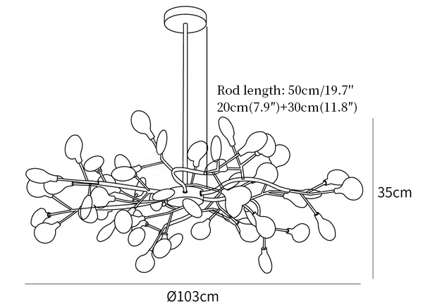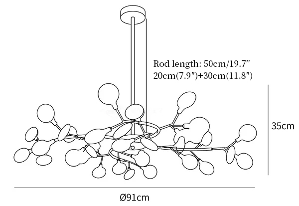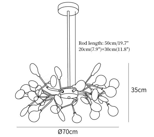 Suspension rod length 20cm+30cm / 7.9″+11.8″. The length of the suspension rod can be varied upon request.