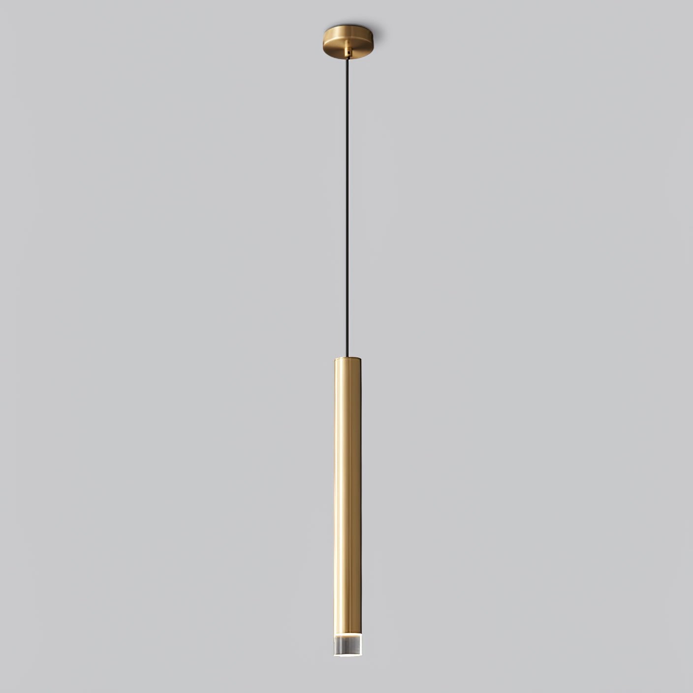 The Linea Mono Pendant Light distills lighting to its essence—an ultra-slim cylindrical silhouette in a refined matte black finish. Its minimal form is paired with a focused downward glow, ideal for illuminating kitchen islands, bedside tables, or sculptural hallways. Subtle brass accents add a warm contrast, merging industrial restraint with quiet elegance.