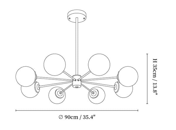 8-Lights Size: Dia 90cm x H 35cm / ∅ 35.4″ x H 13.8″