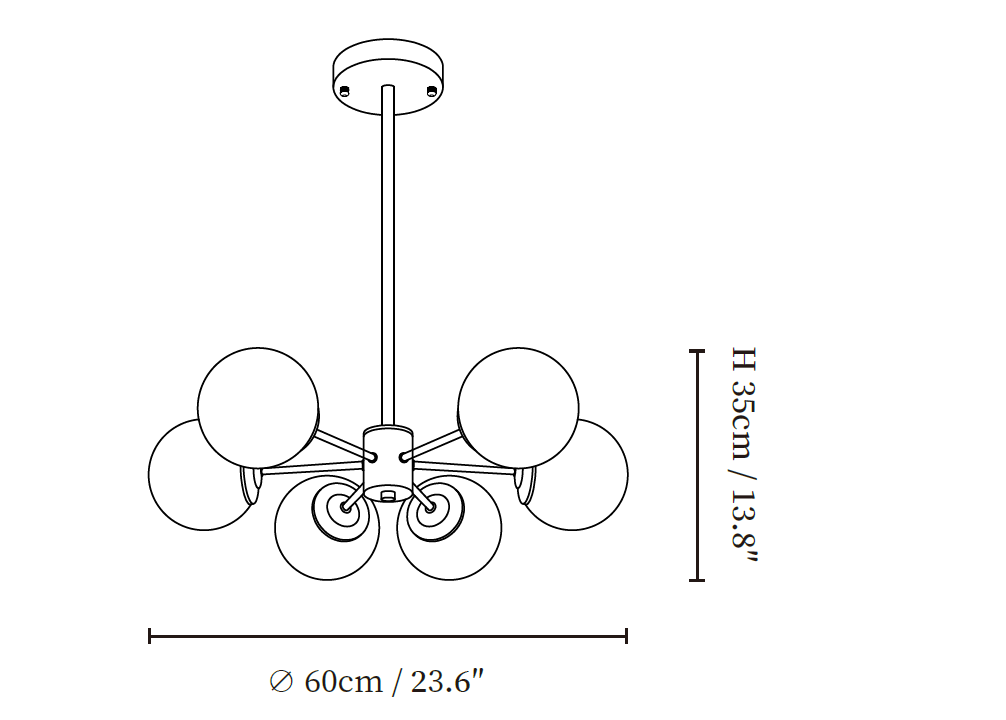 6-Lights Size: Dia 60cm x H 35cm / ∅ 23.6″ x H 13.8″