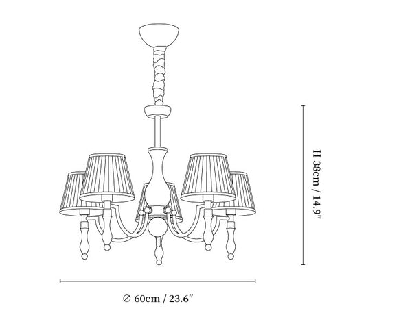 5-Lights Size: Dia 60cm x H 38cm / ∅ 23.6″ x H 14.9″