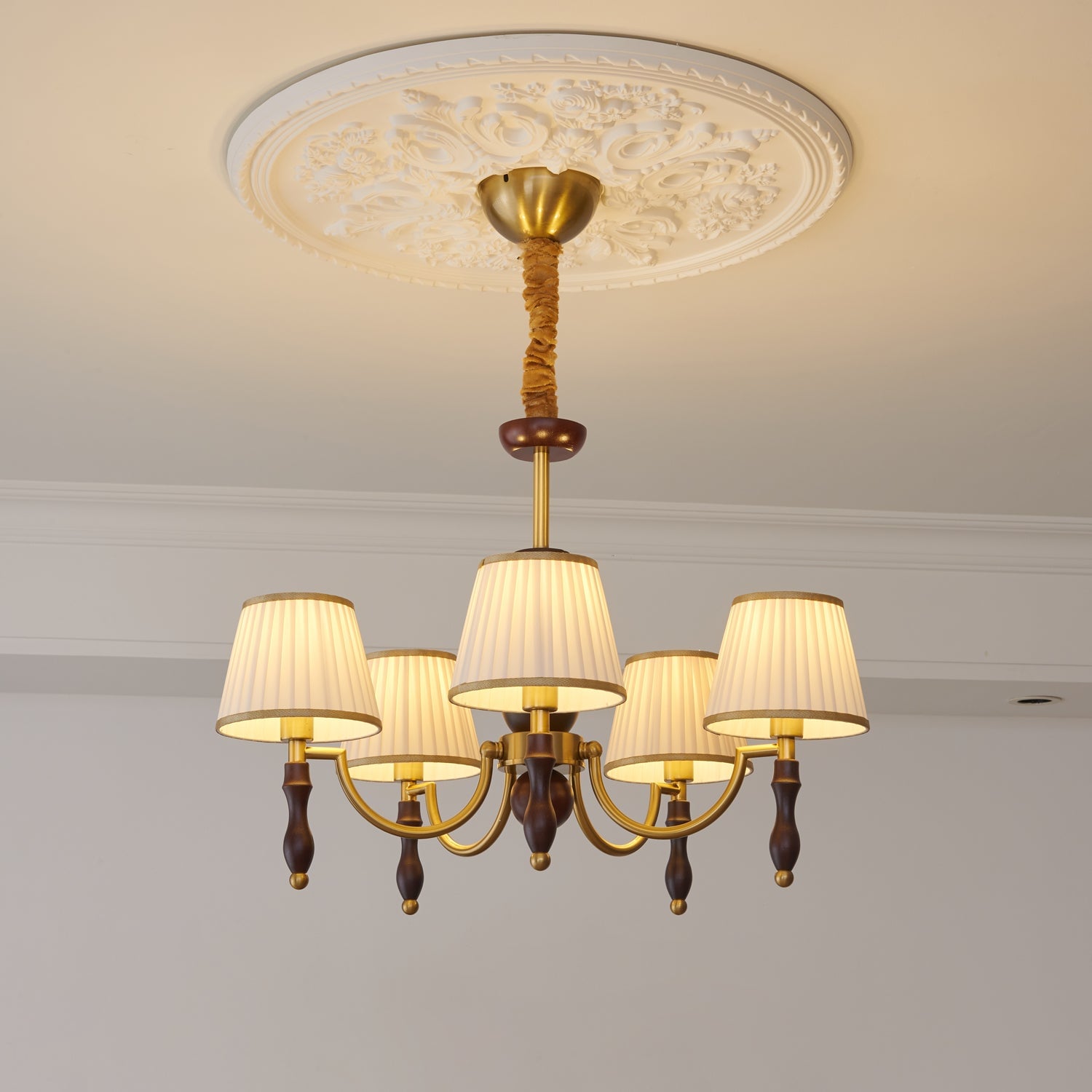 Featuring delicate etched floral shades and rich walnut accents, Lighting's Heritage Bloom Chandelier embodies a vintage charm. Its graceful design is perfect for adding a romantic glow to your home.