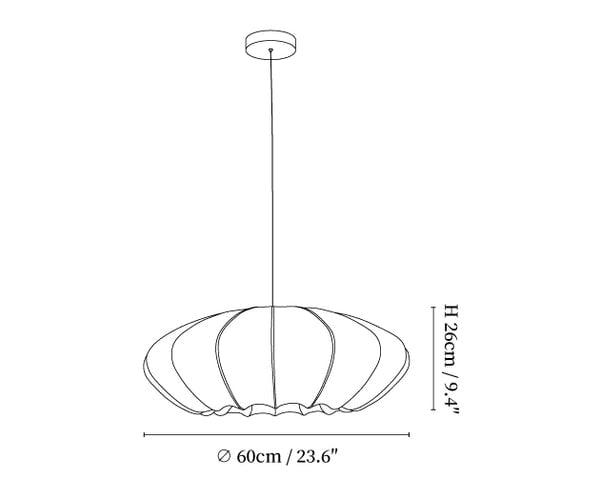 The Makoto pendant lamp combines elegance and practicality with a soft and charming design. Made from high-quality silk, it emits a soft, diffused light that creates a calm and comfortable atmosphere in any room. Its airy design is not only a visual delight, but also a source of even and pleasant lighting, making it the perfect addition to any bedroom.