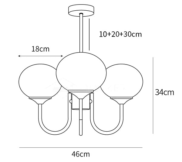 Suspension rod length 10cm+20cm+30cm / 3.9″+7.9″+11.8″. The length of the suspension rod can be varied upon request.